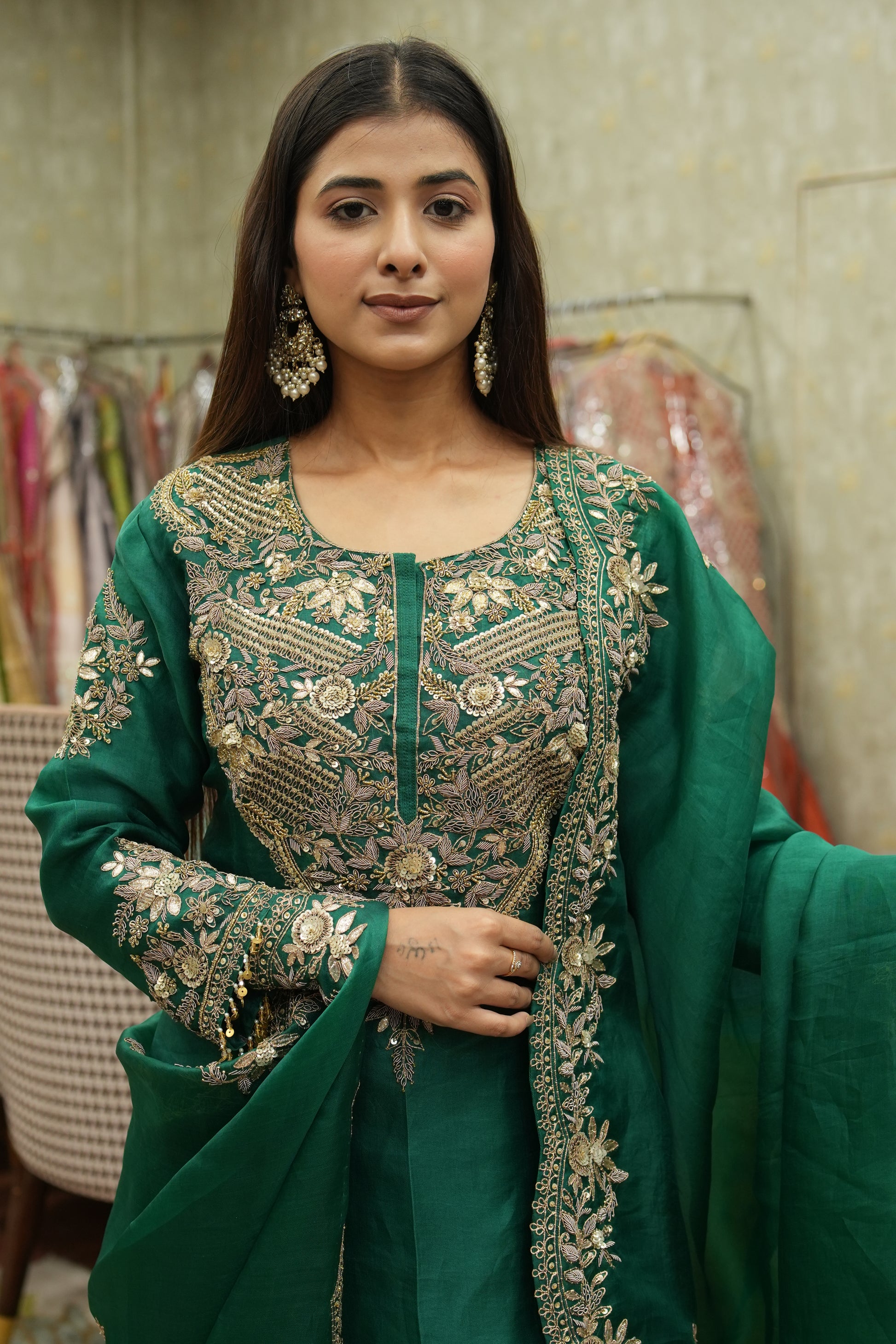 Fabric: Kurta and Dupatta- pure Organza and Bottom is of pure gerorgette